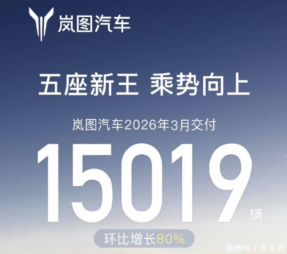 岚图3月交付1.50万辆,同比增长50%,环比增长80%,销量增长与3月岚图连续推出多款战略车型有关。