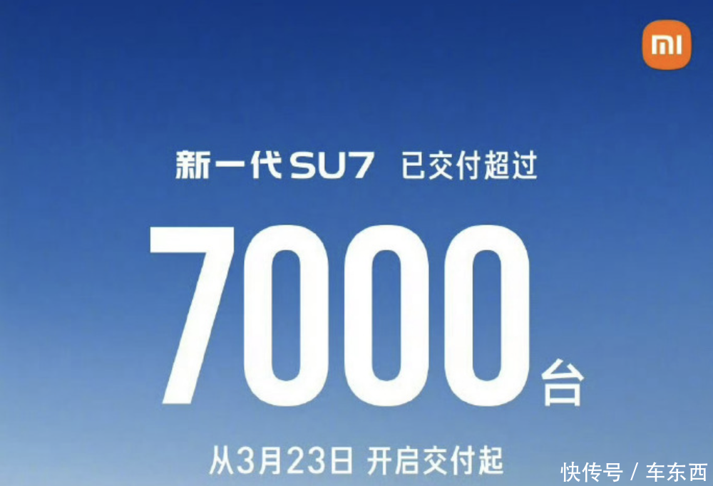 值得注意的是,新一代SU7于3月19日正式发布、3月23日开启交付,交付首周即实现交付超7000台。