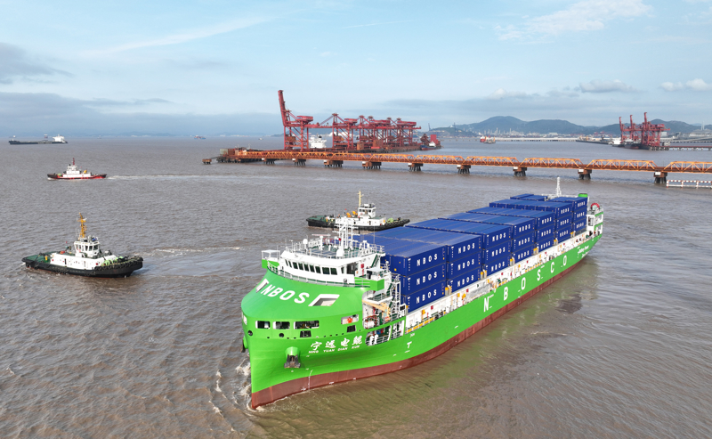 纯电动智能集装箱海船“宁远电鲲”轮。\n 新华社发