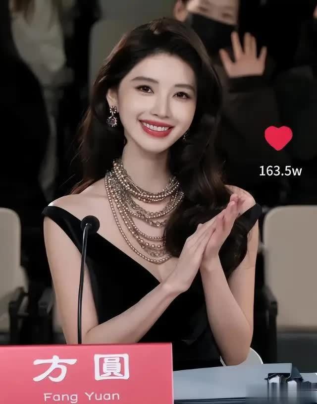 反观方圆,当天特意选了深V高开叉礼裙,踩着十厘米细高跟,妆容也往精致大气的方向靠拢,眼妆画得浓重,口红选了显气场的正红色,试图靠穿搭和妆容弥补与超模的差距。